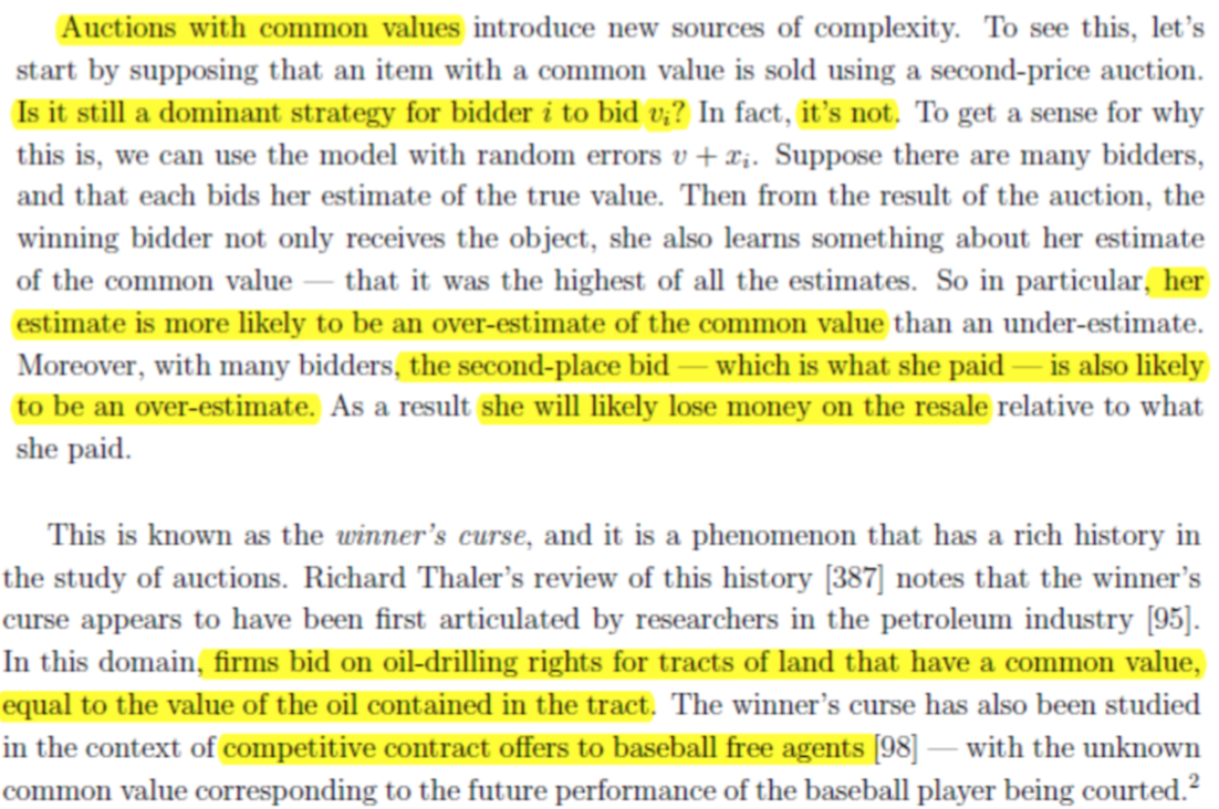 낙찰 시, 공통 값보다 over-estimated 인 가격을 지불했을 가능성이 높으면 낙찰 받은 물건을 되팔 때 손해를 볼 수 있다.