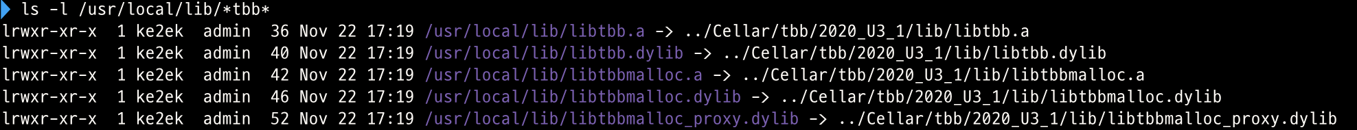 Also, check ls -l /usr/local/lib/*tbb*