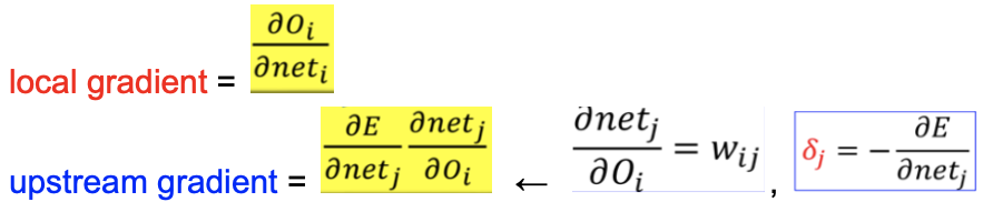 Local gradient: 현재 노드의 함수를 들어오는 간선의 가중치에 대해 각각 편미분한 결과이다.