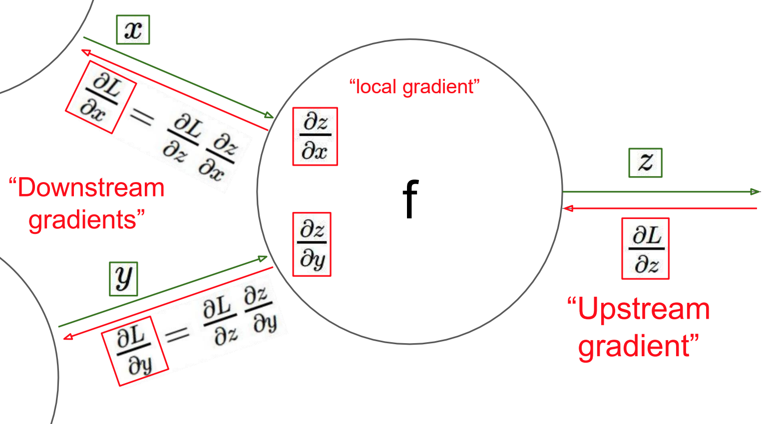 Upstream gradient: 다음 레이어의 노드에서 이미 계산된 미분으로 현재 레이어의 노드의 입력으로 들어온다.