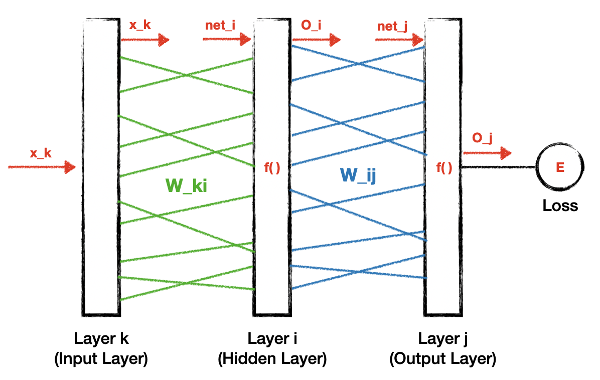 W_kj 레이어 k와 i를 연결하는 간선의 가중치(=행렬)