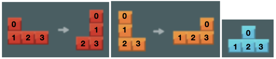 - 아래와 같이 블록 번호별로 좌표를 순서대로 저장하면 좌표를 비교해서 블록 모양을 알아낼 수 있음