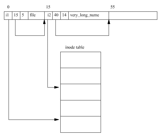 디렉토리 엔트리는 디렉토리에 저장된 파일과 1:1 대응이며, 모든 디렉토리에서 첫 2개의 엔트리는 각각 .과 ..으로 현재 디렉토리와 부모 디렉토리를 의미