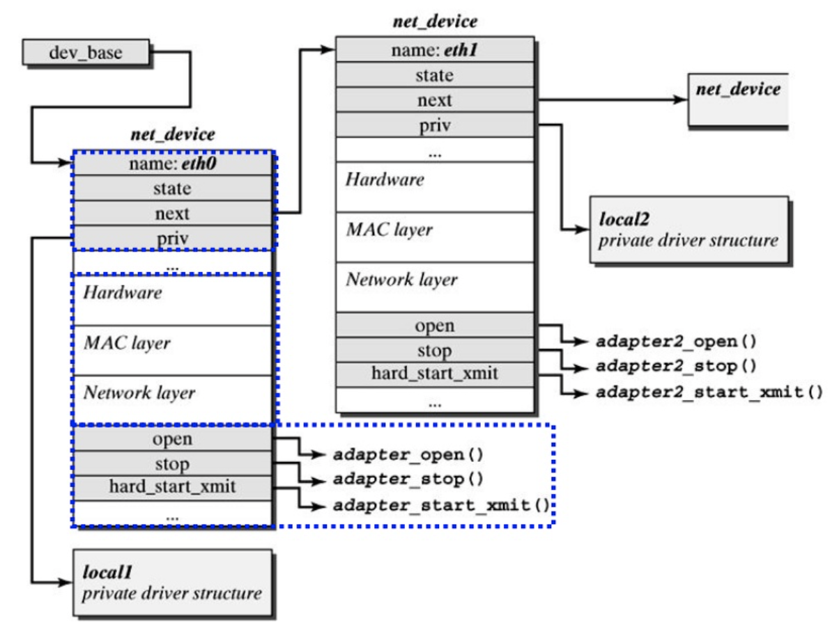 예를 들어, 마운트된 파일 시스템을 나타내는 수퍼블럭은 고유의 inode 읽기 루틴에 대한 포인터를 가지며, 호출 시 적절한 파일 시스템의 블럭을 읽을 수 있게 됨