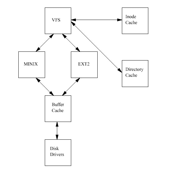 전체 파일 시스템과 특정 마운트된 파일 시스템을 기술하는 자료구조를 관리하기 위한 인터페이스로, EXT2와 비슷한 방법으로 시스템에 있는 파일을 수퍼블럭과 inode로 표현 (VFS inode는 EXT2 inode처럼 시스템에 있는 파일과 디렉토리를 나타냄)