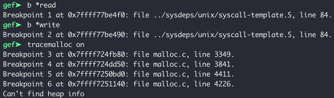 위의 정보를 얻기 위해 먼저 read, write 함수에 bp를 걸고 malloc/free를 체크했다.