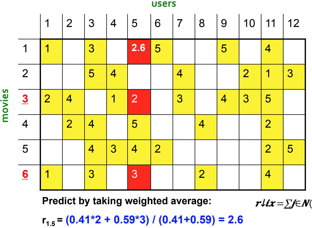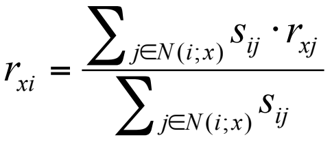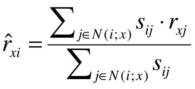 - N(i; x) = 영화 i와 유사한 고객 x에 의해 등급이 매겨진 영화들의 집합