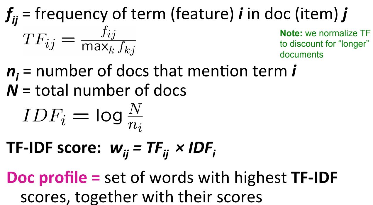 - Doc Profile = TF-IDF 가 가장 높은 단어들의 집합