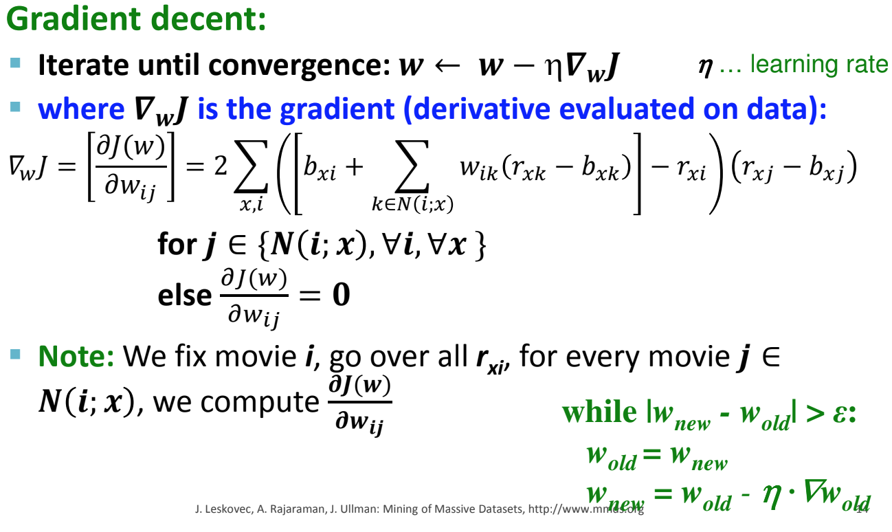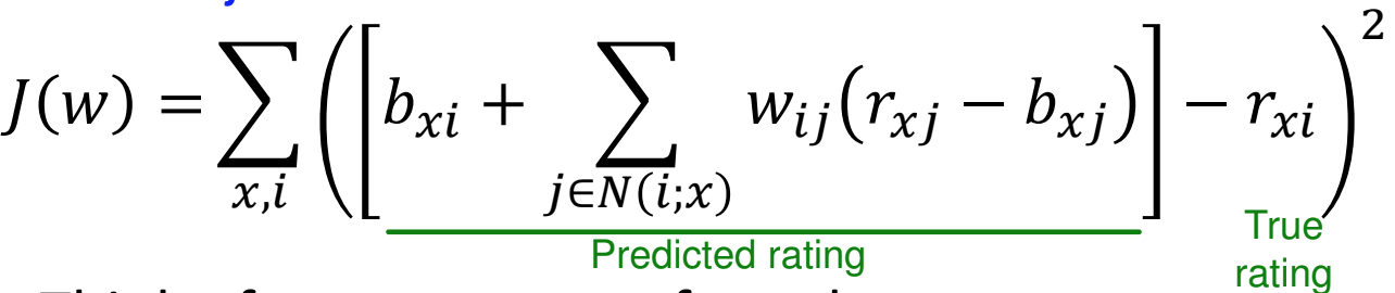 - Wij 는 영화 i를 평가했던 모든 다른 고객과 고객 x를 기반으로 학습되거나 측정된다.
