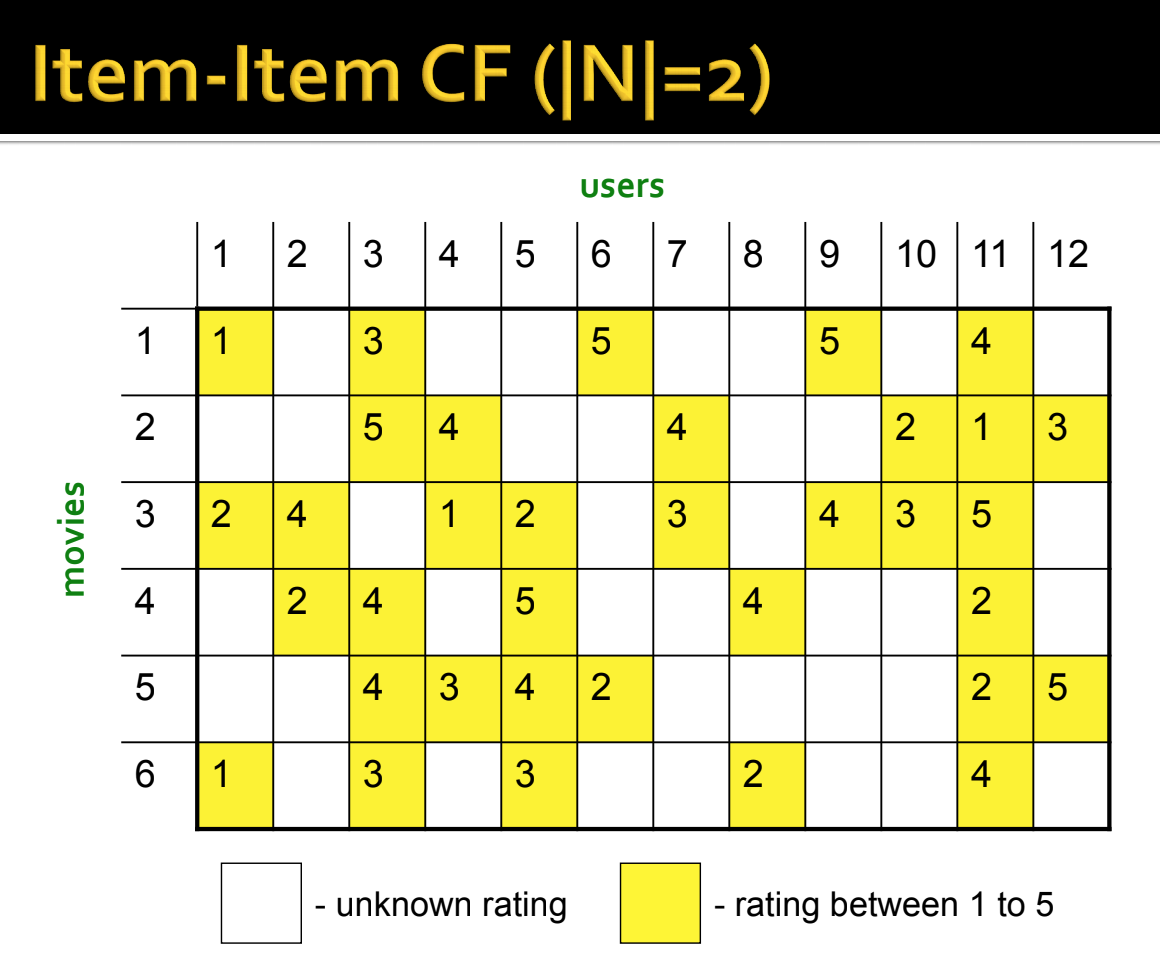 - N(i; x) = 고객 x에 의해 등급이 매겨졌던 아이템 i와 가장 유사한 아이템 집합