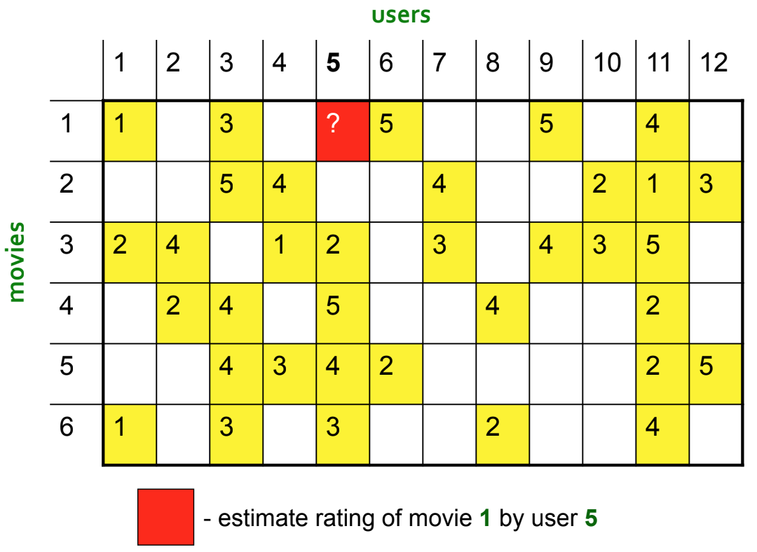 - 예시: 넷플릭스 - 100 만개의 등급(ratings), 2000 ~ 2005 년간의 데이터, 평가 기준 = RMSE