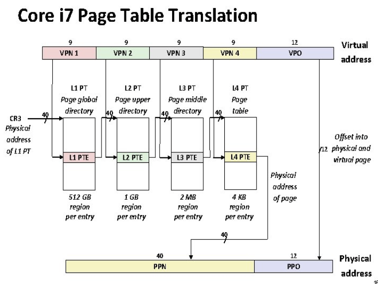- MMU는 엔트리에서 물리 페이지 프레임 번호(PFN)를 얻음