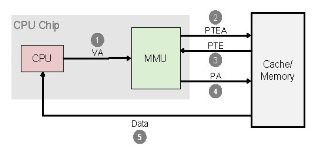 - CPU가 가상 주소를 메모리 관리 장치(MMU)에게 전달