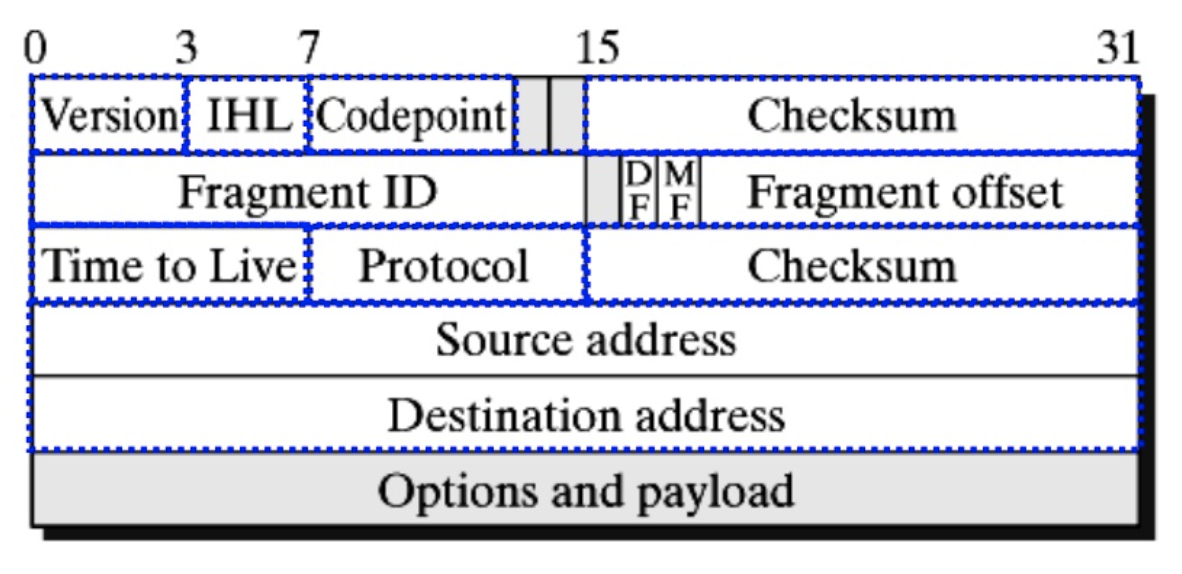 - 데이터들은 IP 패킷(packet)에 담겨 전달되며, 각 패킷마다 출발지 호스트와 목적지 호스트의 IP 주소, 체크섬(checksum) 및 IP 헤더가 추가됨
