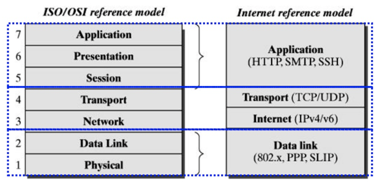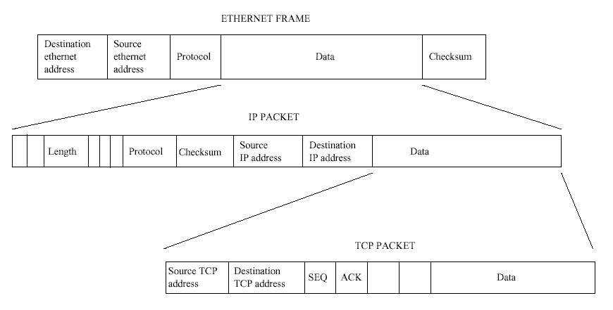 - 프로토콜의 계층 구조는 TCP/UDP 및 IP로 구분하지 않고, IP 프로토콜 자체도 패킷을 전달하는데 여러 장치를 사용하기 때문에 각 장치에서 각자의 프로토콜 헤더를 추가하기도 함