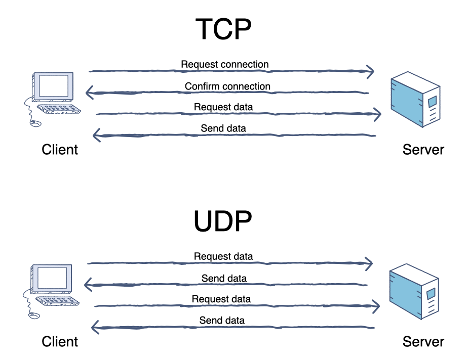 - UDP(User Datagram Protocol) 비연결지향 방식의 프로토콜 (패킷이 전송 시 제대로 도착했는지 확인 불가)
