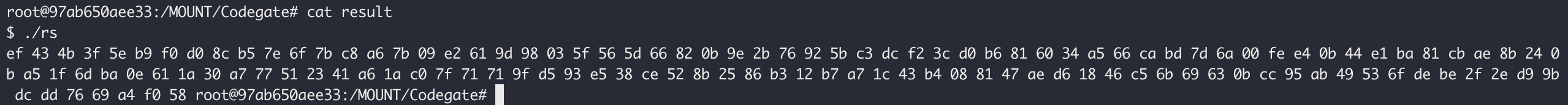문제는 Rust 바이너리를 리버싱해서 플래그를 찾으라는 거다. 2개의 파일 rs, result 이 주어지고 각 파일의 실행결과는 다음과 같다.